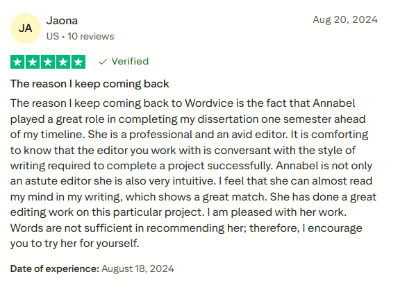 在全球知名評價平台 Trustpilot 上,客戶認為 Wordvice 的英文母語編輯同時具備專業背景與學術寫作能力,能夠清楚理解客戶想要表達的內容,並協助將文章改善得更加出色。