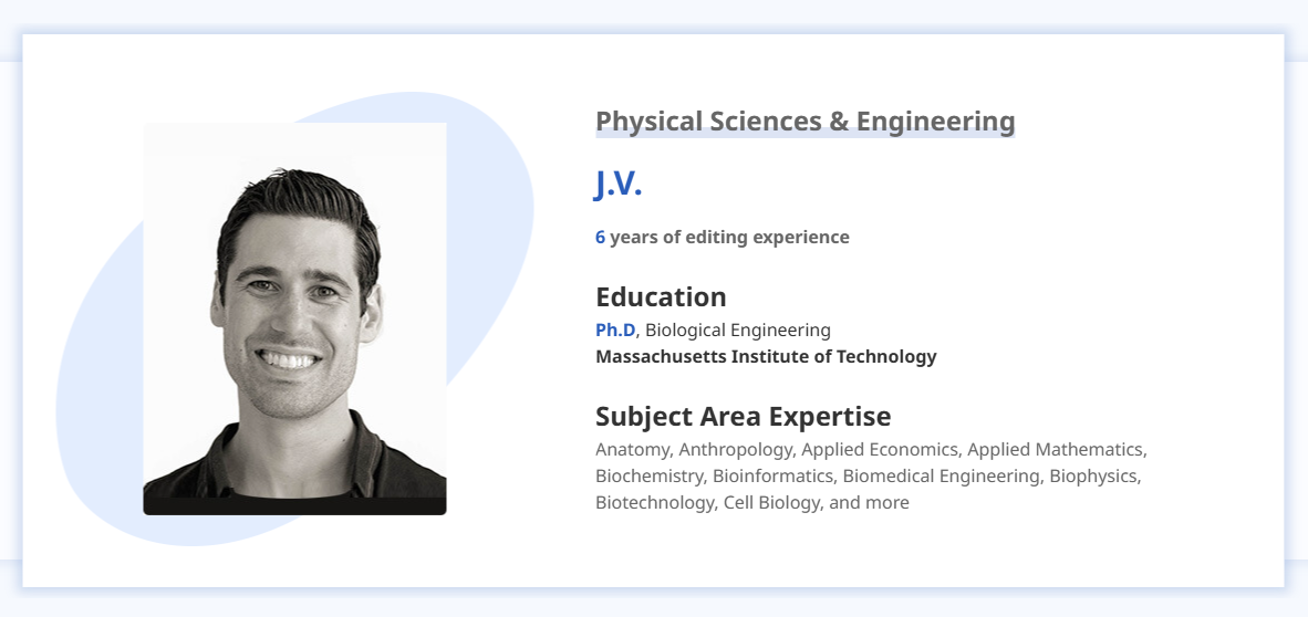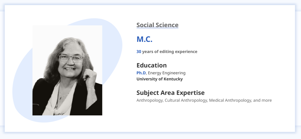 Enago 的編輯多數擁有博碩士學歷,並依學科分類指派編輯,客戶可在網站上查詢編輯背景資訊並指定編輯,收到稿件時,也能參閱編輯留下的修改痕跡確認論文修改內容。