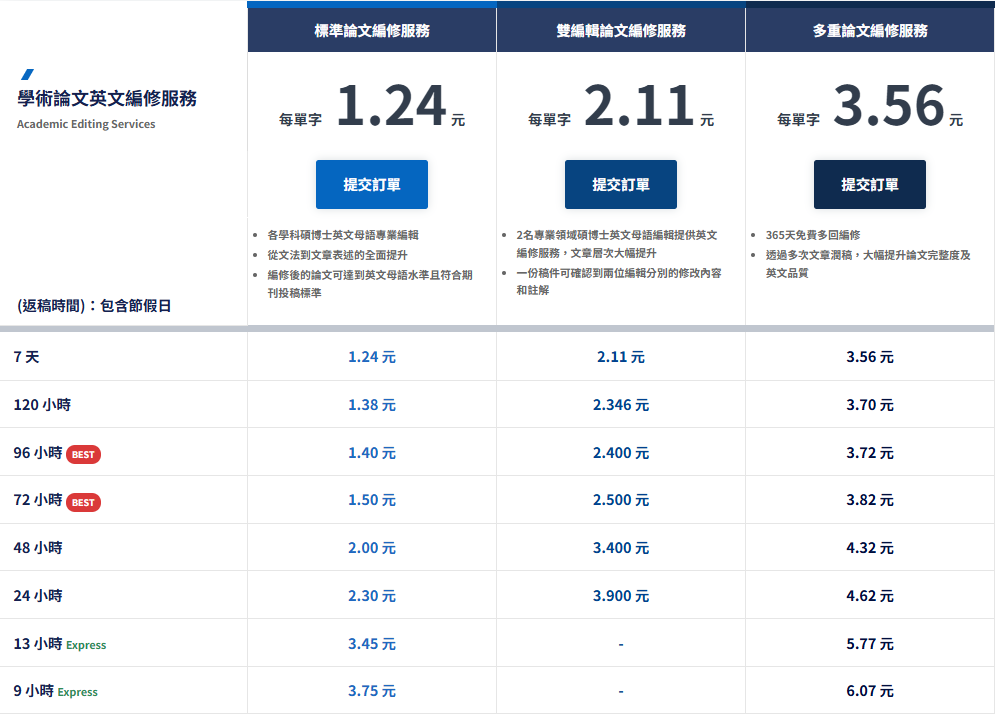 因此,我們建議使用者考量自身時程與預算條件選擇最適合的英文編修服務,才能順利完成研究與留學目標。
