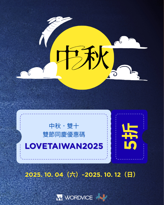 歡慶中秋節、雙十國慶日連續休假,Wordvice 今年特別規劃【中秋.國慶雙節同慶優惠活動】,陪伴您一起度過這段美好的休假時光!