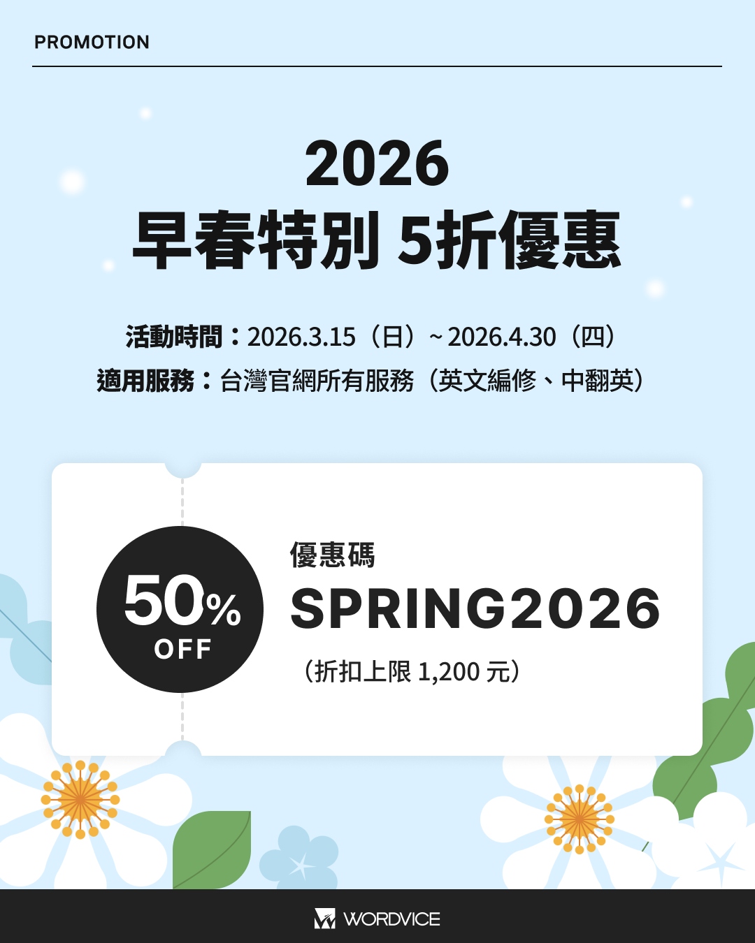 請在結帳頁面上方優惠碼欄位輸入:SPRING2026,即享有優惠價格。